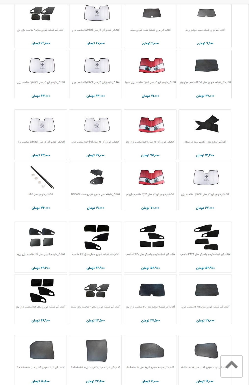 در این بسته قیمت انواع آفتابگیر خودرو شامل : جلو، عقب، بغل؛ مناسب برای پژو، سمند، تیبا، پراید و دیگر ماشین ها ایرانی و خارجی را مشاهده خواهید.