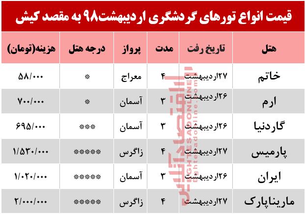 خبرفوری اقتصادی بازار و تجارت ۲۳ اردیبهشت ۱۳۹۸ ۱۰:۴۳ قیمت انواع تور کیش قیمت انواع تورهای گردشگری به مقصد کیش در اردیبهشت۹۸ به شرح جدول زیر است. کپی شد کدخبر: 1006781 ت ت منبع: عصر ساختمان 728 قیمت بازار کپی شد با دوستان خود به اشتراک بگذارید: