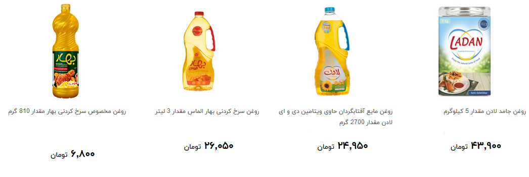 قیمت انواع روغن مایع خوراکی در بازار به شرح زیر است: