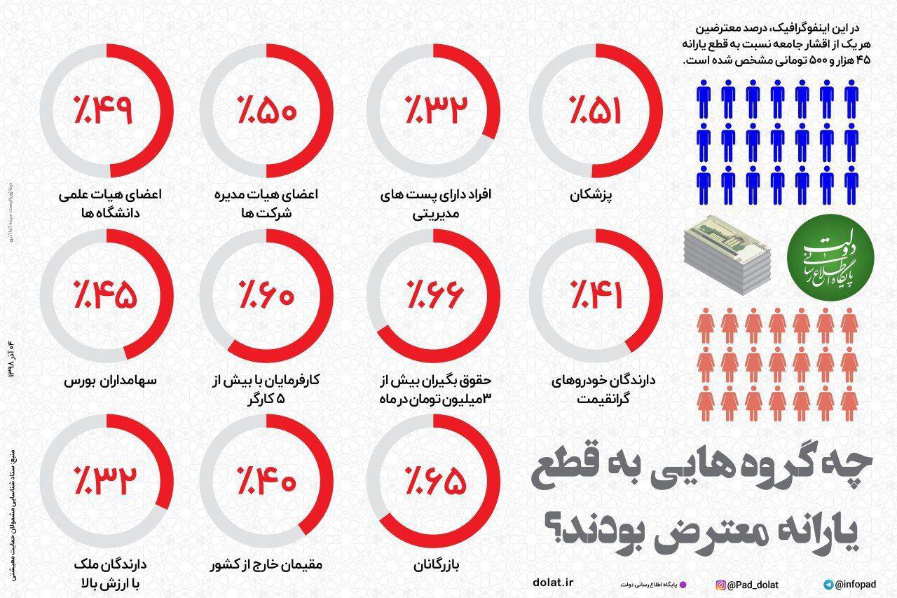 اینفوگرافی زیر توضیح میدهد که چه گروههایی به قطع یارانه معترض هستند.