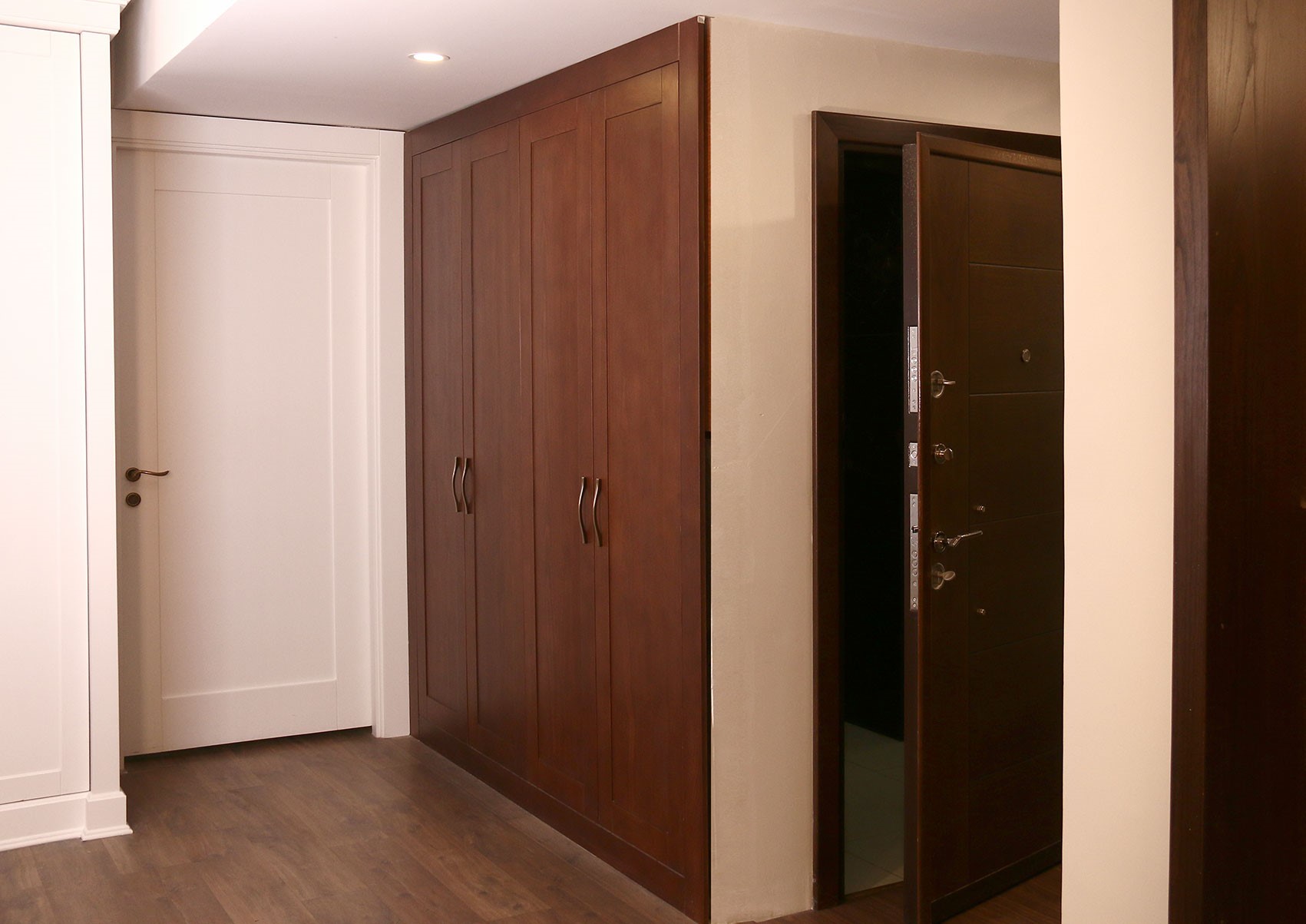 یکی از مزایای بهره گیری از اجزای چوبی این است که می توانید برای اکثر تجهیزات از قبیل درب و کمد دیواری، از طرح و روکش یکسان بهره بگیرید. این امر باعث می شود تا از لحاظ بصری فضا منظم تر و شیک تر به چشم بیاید.