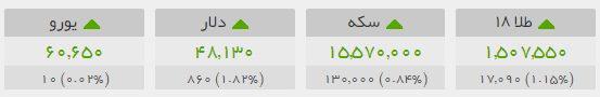 افزایش قیمتها به بازار سکه هم سرایت کرد بطوریکه سکه بهار آزادی نیز به 155 هزار و 700 تومان رسید و نیم سکه 766 هزار تومان، ربع سکه 458 هزار تومان و سکه گرمی 304 هزار تومان قیمت گذاری شد.