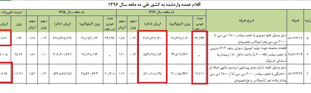 همچنین 19200 خودرو با حجم 2000تا 2500 سی سی از گمرکات مختلف وارد کشور شده که ارزش آنها بیش از 520 میلیون دلار بوده است. به این ترتیب تنها در این دو مورد (به غیر از خودروهای هیبریدی)نزدیک به 46 هزار خودرو وارد کشور شده است. در مدت مشابه سال قبل تنها 44 هزار خودرو از مدلهای مذکور به کشور وارد شده بود.