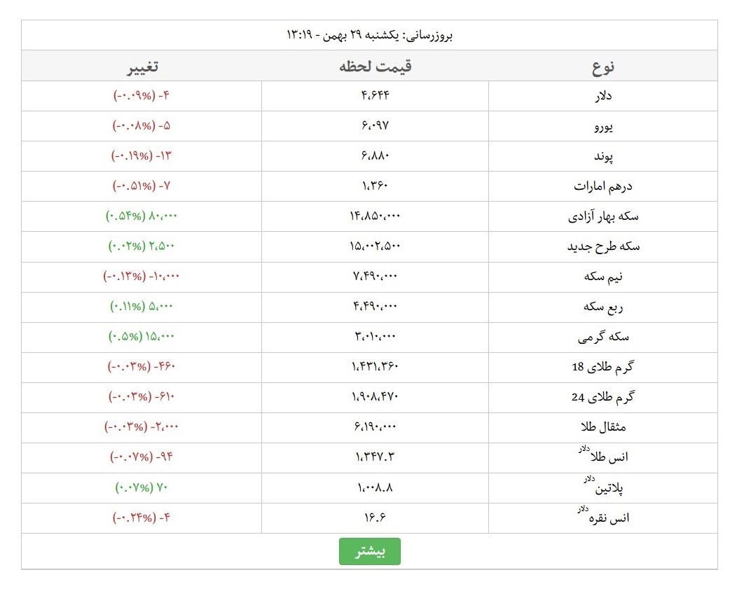 تغییرات لحظه‌ای قیمت دلار، طلا، سکه و ارز را اینجا مشاهده کنید.
