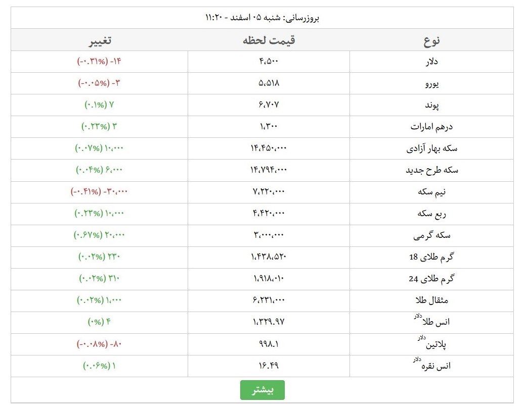 ** توجه داشته باشید نرخ دلار در جدول زیر با نرخ لحظه‌ای دلار در کف بازار متفاوت است, در این خبر منظور از نرخ دلار که در بالا هم درج شده، قیمت لحظه‌ای دلار است که مقابل پاساژ افشار معامله می‌شود.