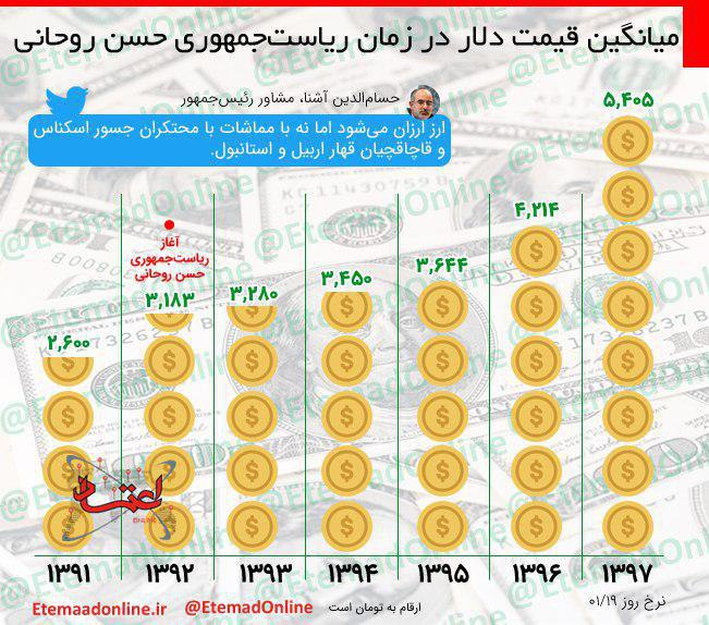 اینفوگرافیک /میانگین قیمت دلار در زمان ریاستجمهوری حسن روحانی