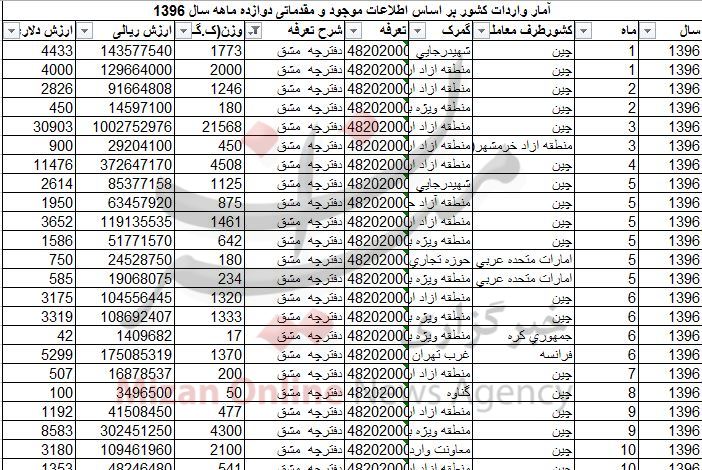 دفترچه مشق از چه کشورهایی وارد شد؟ + جدول