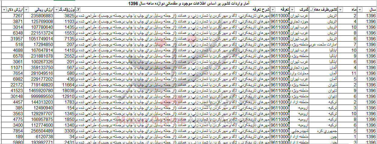 گفتنی است این میزان مهرهای تاریخ زنی، لاک و مهر کردن یا شمارهزنی از کشورهای اتریش، امارات، ایتالیا، آلمان، تایوان، ترکیه، جمهوری کره، چین، فرانسه و هنگ کنگ وارد کشور شده است.
