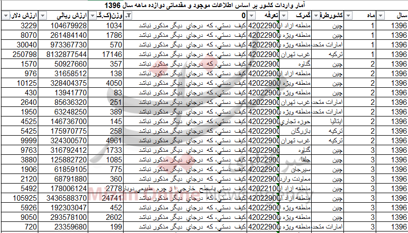 براساس آمار مقدماتی گمرک از تجارت خارجی ۱۲ ماهه سال ۹۶ نشان میدهد که در این مدت بیش از ۶۱۳ تن کیف دستی از کشورهای مختلف جهان وارد ایران شده است.