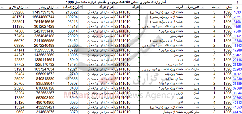 آمار مقدماتی گمرک از تجارت خارجی ۱۲ ماهه سال ۹۶ نشان میدهد که در این مدت بیش از هزار و ۷۶۳ تن مداد تراش و تیغه آن وارد کشور شده است.