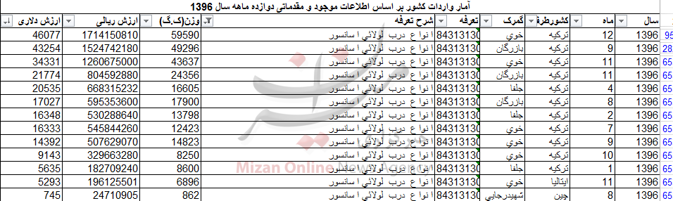 بر اساس آمار مقدماتی گمرک از تجارت خارجی ۱۲ ماهه سال ۹۶، در این مدت بیش از ۲۷۷ تن انواع درب لولائی آسانسور از ۳ کشور وارد ایران شده است.