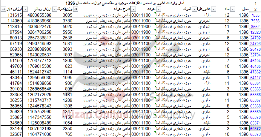 بنا بر آمار این حجم از ماهیهای زنده زینتی آب شور و آب شیرین از ۴ کشور اندونزی، تایلند، چین و مالزی وارد ایران شده است.