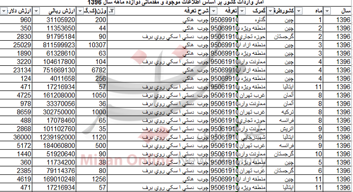 آمار مقدماتی گمرک از تجارت خارجی ۱۲ ماهه نخست سال ۹۶ نشان میدهد که در این مدت بیش از ۴۰ تن چوب اسکی و چوب هاکی از کشورهای مختلف جهان وارد ایران شده است.