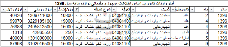 بنا بر آمار این حجم واردات از ۴ کشور هلند، هند، آلمان، امارات وارد شده است.