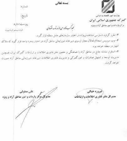 استقرار سامانه گمرک در مناطق آزاد نهایی شد+سند