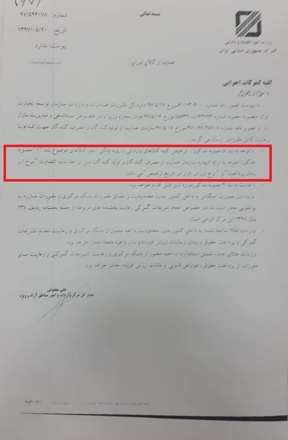 در بخشنامه دفتر واردات گمرک ایران به گمرکات اجرایی که روز 20 مردادماه صادر شد، آمده است، با توجه به مصوبه هیئت دولت در خصوص سامان دهی و مدیریت بازار ارز، ترخیص کلیه کالاهای وارداتی با رویه بانکی به جز کالاهای موضوع بند 1 مصوبه مذکور(کالاهای اساسی) منوط به ارائه تاییده سازمان حمایت از مصرف کنندگان و تولیدکنندگان مبنی بر اخذ ما به التفاوت نرخ ارز در زمان پرداخت و نرخ ارز بازار در تاریخ ترخیص میباشد.