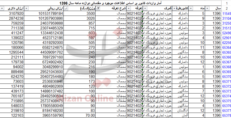 براساس آمار گمرک در ۱۲ ماهه سال ۹۶ بیش از ۱۲ تن سمعک از ۹ کشور وارد شده است.