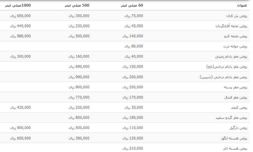 قیمت انواع روغن بکر در بازار چقدر است؟