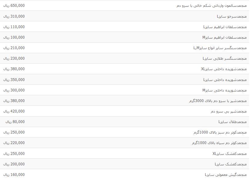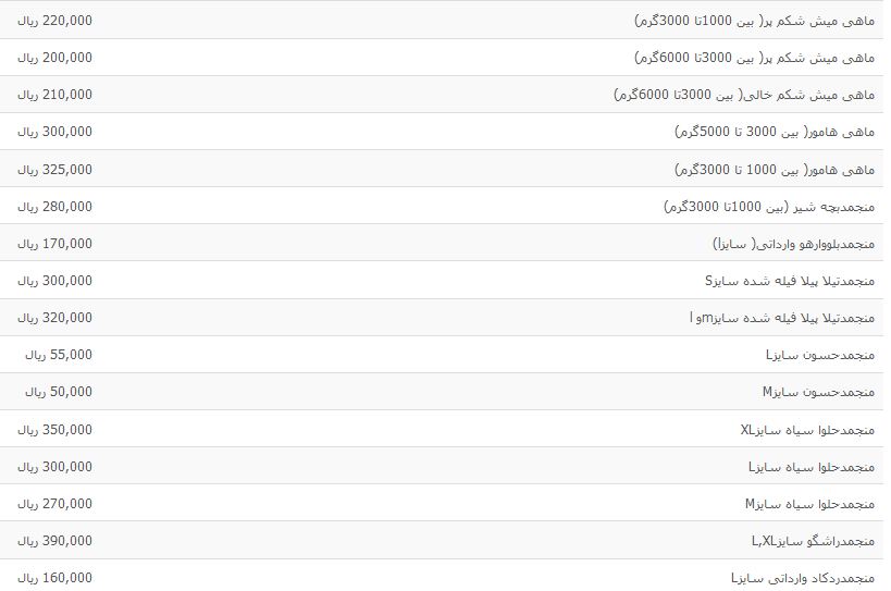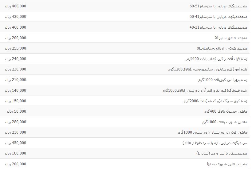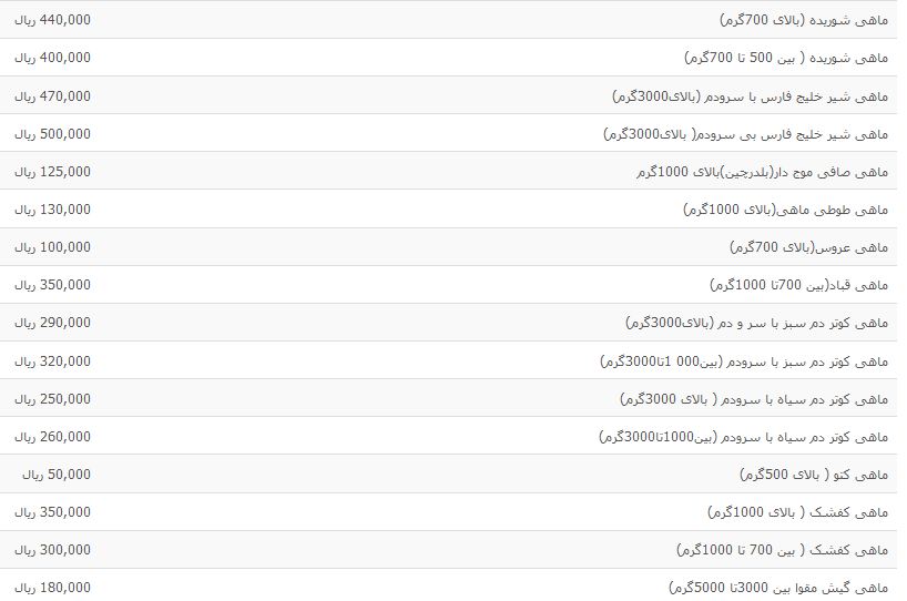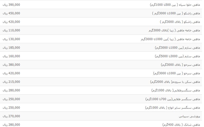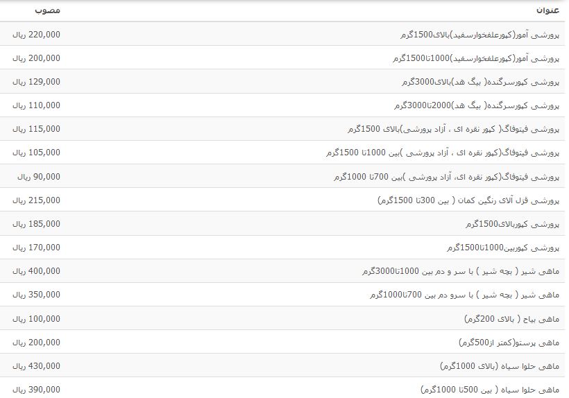 قیمت انواع آبزیان در بازار به شرح زیر است:
