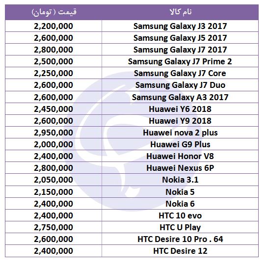 قیمت انواع تلفن همراه در بازار به شرح زیر است: