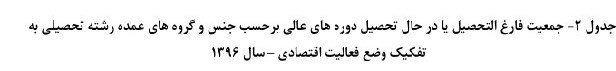 از حدود 12.5 میلیون نفر جمعیت فارغ التحصیلان یا در حال تحصیل دوره های عالی حدود 7.1 میلیون نفر (56.9) فعال اقتصادی می باشند که از این تعداد 5.7 میلیون نفر (80.6 درصد) شاغل و 1.4 میلیون نفر(19.4 درصد) بیکار هستند. همچنین 5.4 میلیون نفر(43.1 درصد) غیر فعال اقتصادی می باشند.