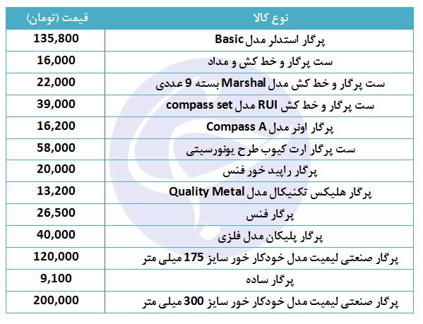 قیمت اقلام مختلف نوشتافزار در بازار نشان از افزایش این محصولات را میدهد، به طوریکه برای خرید یک پرگار ساده، باید مبلغ 9 هزار و 100 تومان هزینه کرد.