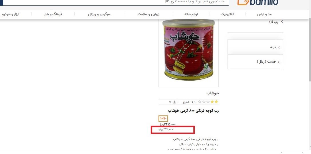 فروش رب گوجه فرنگی بدون قیمت مصرف کننده