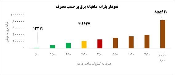 شکل زیر نمودار یارانه برق برای مشترکین با مصارف مختلف را در مناطق عادی نشان میدهد.