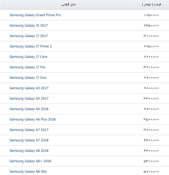 قیمت برخی گوشی های همراه در بازار به شرح زیر است:
