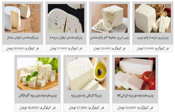 پنیرگوسفندی لیقوان درجه یک (چرب ونیم چرب) با مبلغ ۲۷ هزار تومان در غرفه تره بار عرضه میشود.