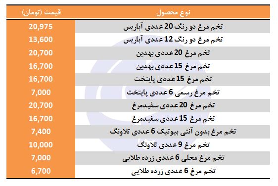 تخم مرغ ۱۵ عددی سفیدمرغ با مبلغ ۱۶ هزار و ۷۰۰ تومان در فروشگاههای زنجیرهای عرضه میشود.