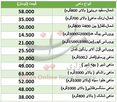 نرخ انواع ماهی در آستانه یلدا/ هرکیلو ماهی سفید ۵۸ هزار تومان + جدول