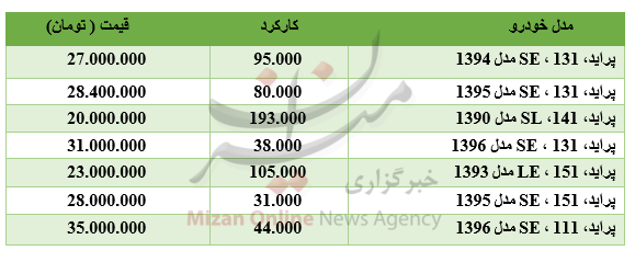 برای خرید پراید چقدر باید هزینه کرد؟ +جدول