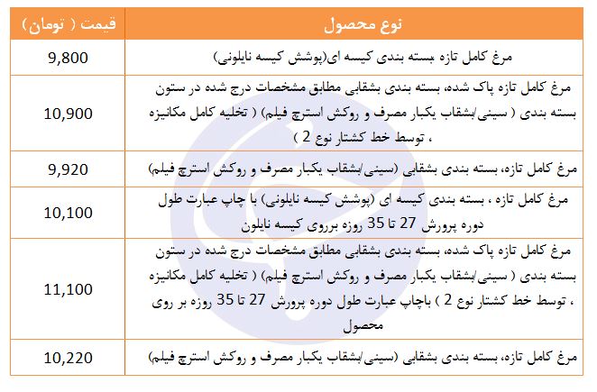 مظنه فروش مرغ تازه در بازار چقدر است؟