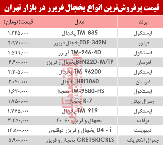 آنچه در زیر می آید جدول قیمت روز جدیدترین انواع یخچال فریزر در سطح بازار تهران است.