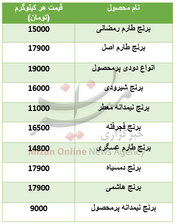 بر اساس نرخنامه سازمان میادین و میوه و تره بار قیمت هر کیلوگرم برنج طارم اصل در بازار باید در حدود ۱۷ هزار و ۹۰۰ تومان است.