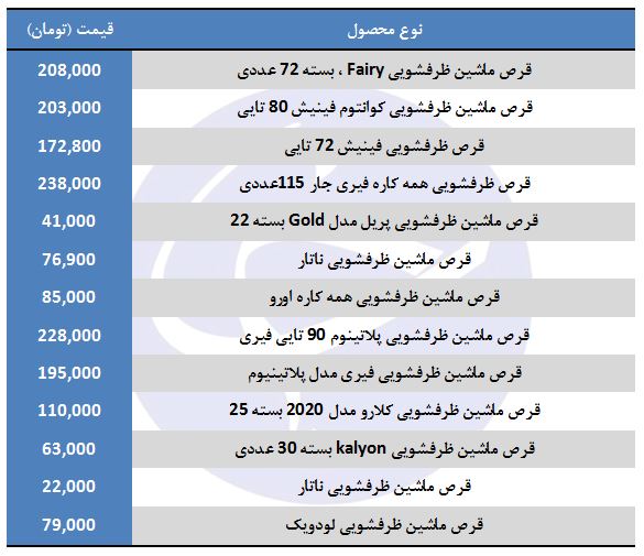 لیست قیمت انواع قرص ماشین ظرفشویی در بستههای مختلف با برندهای متفاوت به شرح زیر است: