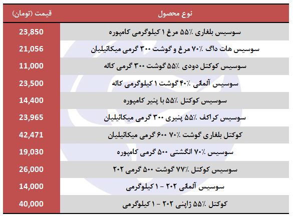 سوسیس کوکتل ۵۵% با پنیر کامپوره با مبلغ ۱۴ هزار و ۴۰۰ تومان در بازار به فروش میرسد.
