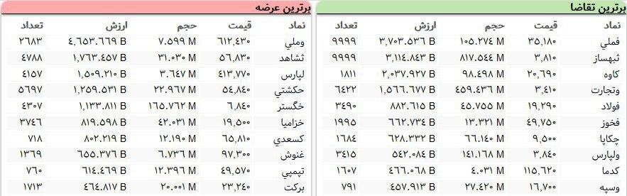 سنگینترین صفهای خرید و فروش سهام در ۱۶ شهریورماه