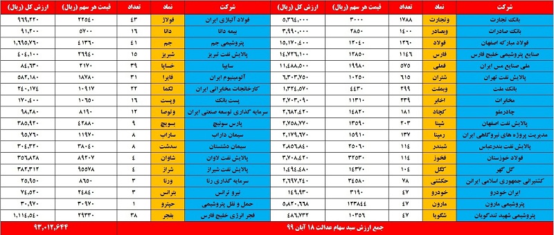 ارزش سهام عدالت، امروز ۱۸ آبان ۹۹