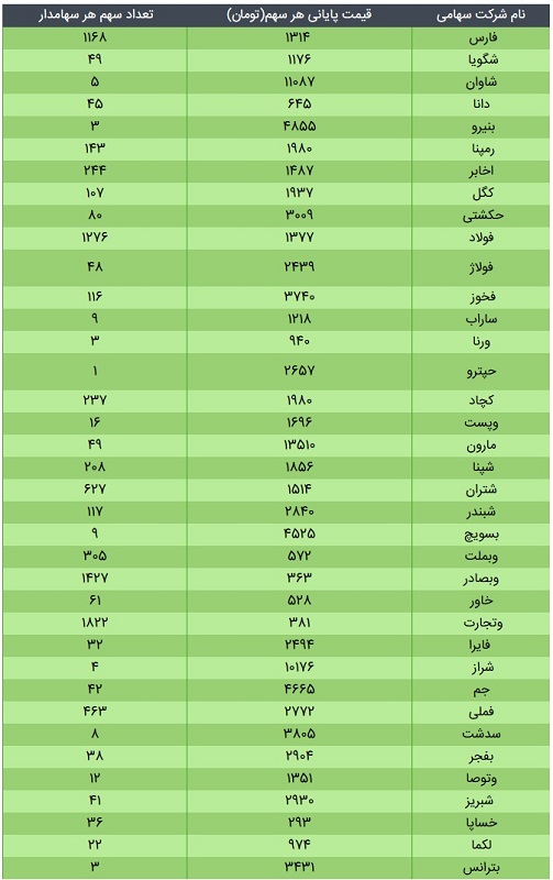 ارزش سهام عدالت، امروز ۹ آذر ۹۹