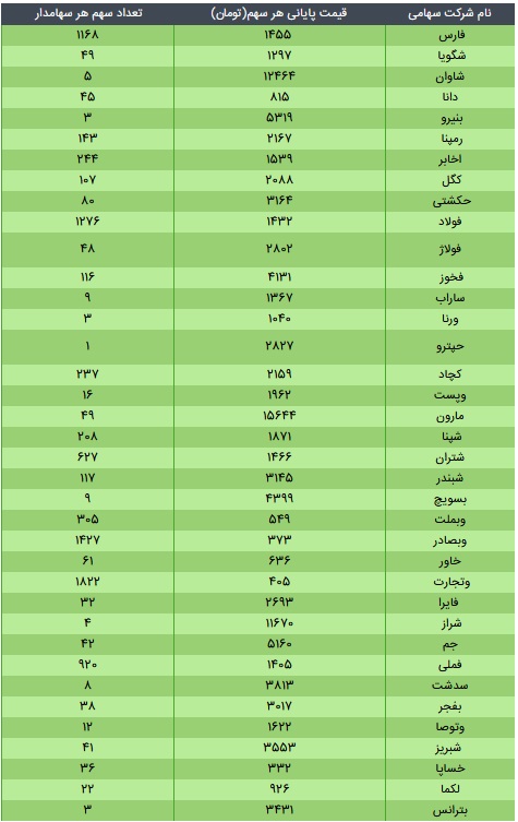 ارزش سهام عدالت، امروز ۱۷ آذر ۹۹
