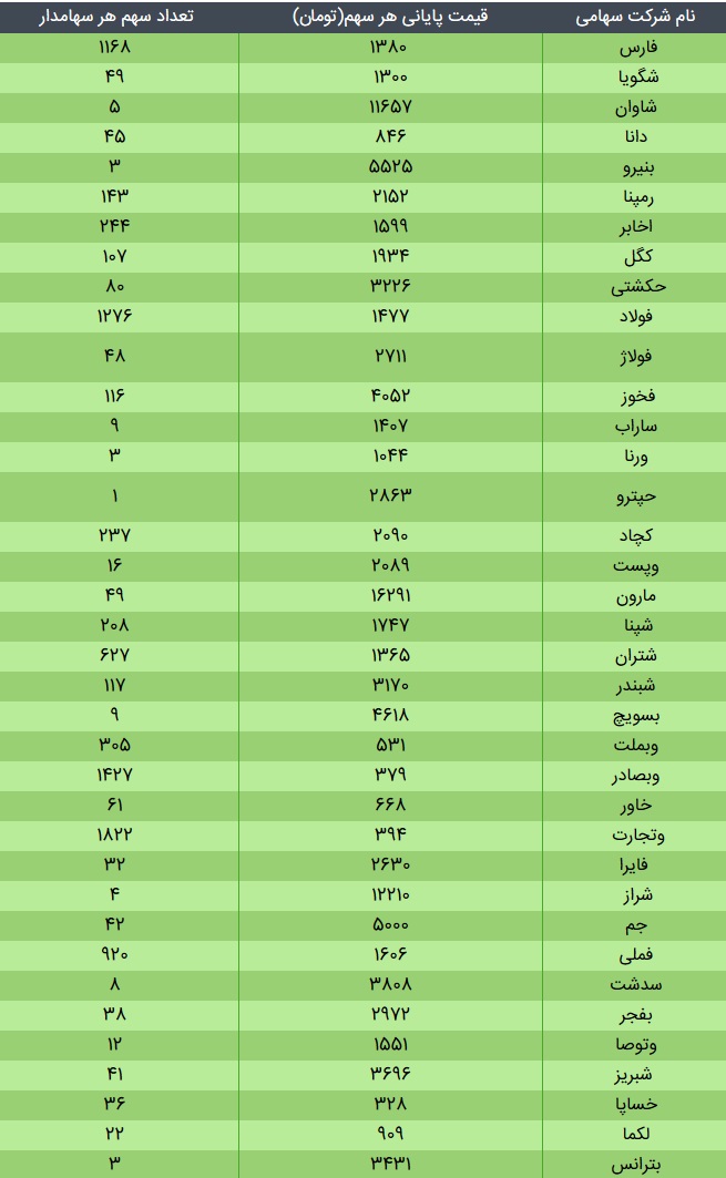 پس از پایان معاملات امروز بازار بورس ایران (چهارشنبه ۱۹ آذر)، ارزش هر برگه سهام عدالت ۴۹۰ هزارتومانی دارندگان این سهام به ۱۲ میلیون تومان رسید.