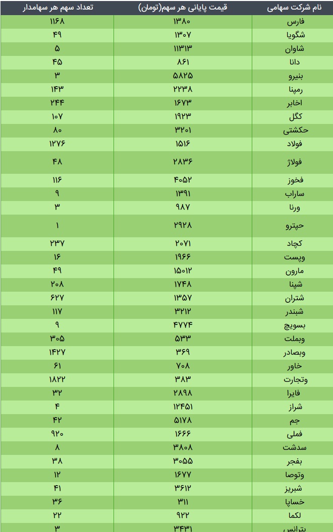 ارزش سهام عدالت، امروز ۲۲ آذر ۹۹