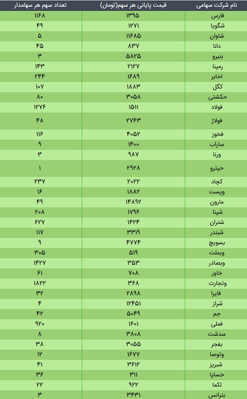 ارزش سهام عدالت، امروز ۲۳ آذر ۹۹