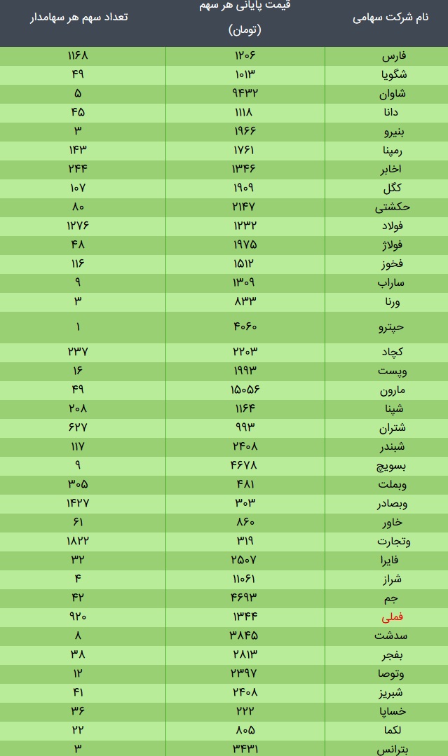 ارزش سهام عدالت، امروز ۱۶ دی ۹۹