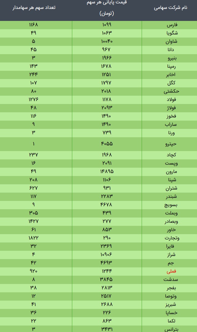 ارزش سهام عدالت، امروز ۲۱ دی ۹۹