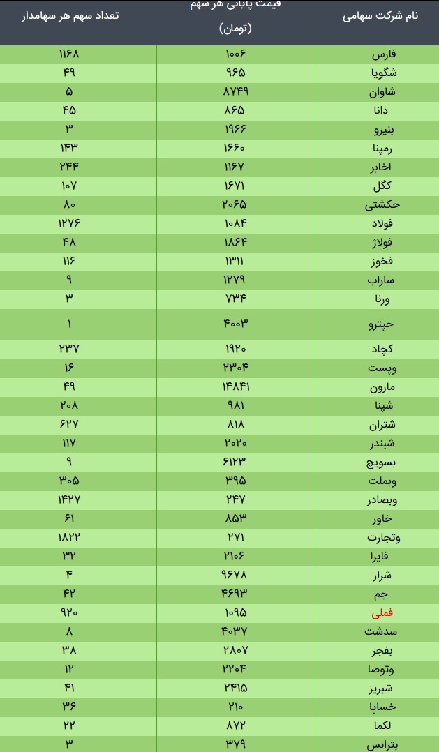 ارزش سهام عدالت، امروز ۲۴ دی ۹۹