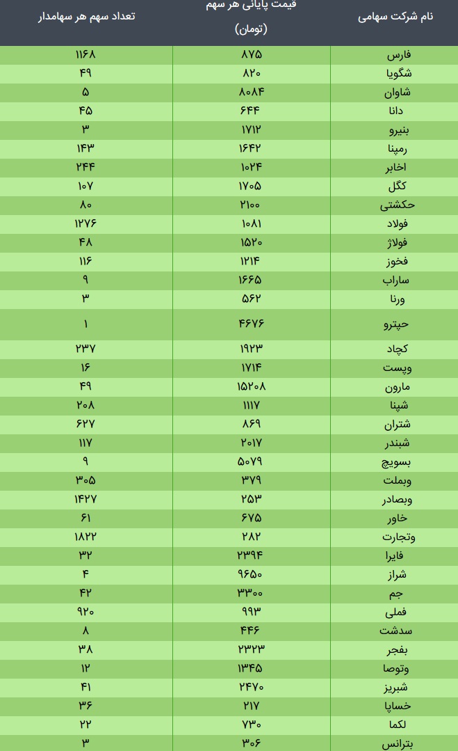 پس از پایان معاملات امروز بازار بورس ایران (۱۹ بهمن ماه ۹۹)، ارزش هر برگه سهام عدالت ۴۹۰ هزارتومانی دارندگان این سهام به ۸ میلیون وچهارصد و نود و یک هزار تومان رسید.