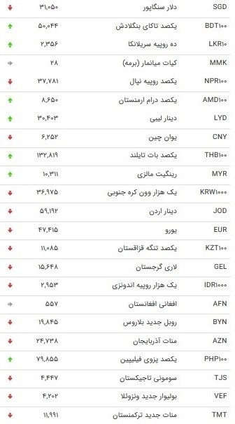 بانک مرکزی نرخ ۴۷ ارز را برای امروز اعلام کرد که طی آن نرخ ۱۰ ارز افزایش، قیمت ۳۳ کاهش یافت و نرخ ۴ ارز دیگر نیز ثابت بود.